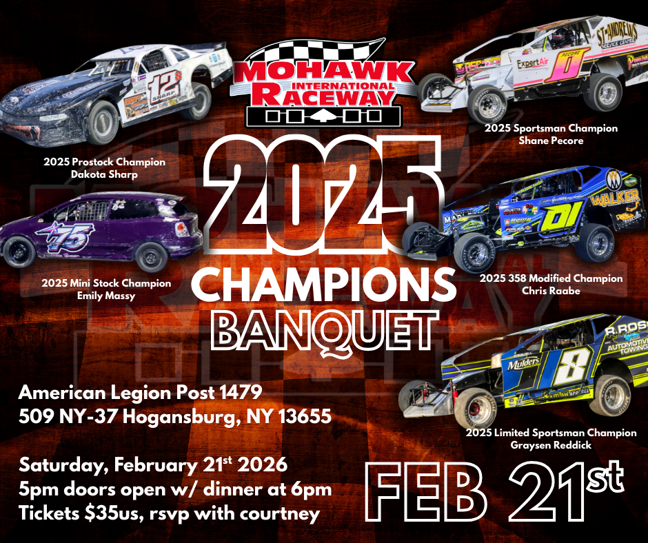 Mohawk hosts a full summer schedule of weekly racing, typically featuring multiple classes such as Modified 358’s, Sportsman, Pro Stocks, Limited Sportsman, and Mini Stocks. From high-octane sprint races to championship weekends and special events, there’s always something exciting on the program for racing fans of all ages.